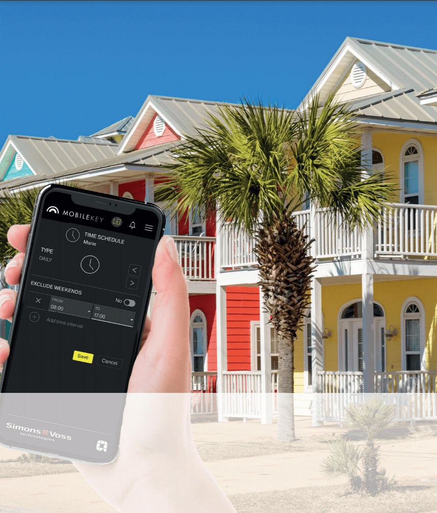 Verhuurders van een vakantiewoning profiteren eveneens van het gebruik van toegangscontrole. Voor het overhandigen van sleutels kan het medium ook buiten de woning worden geplaatst en weggenomen, maar zonder verlies van de veiligheid: De toegang tot de accommodatie wordt door de exploitant met een paar muisklikken dusdanig geconfigureerd dat de bewaarde transponder pas vanaf een bepaald tijdstip functioneert. Als alternatief kan de transponder ook al voor de vakantie met de post worden toegestuurd. Op die manier hoeft de gebruiker geen codes te vervangen of te wijzigen en is voor de gast geen omweg nodig via een tussenpersoon. Zo is de veiligheid van het vakantieverblijf te allen tijde gewaarborgd, waardoor exploitanten en gasten zich geen zorgen hoeven te maken over kwijtgeraakte sleutels of onbevoegde toegang.